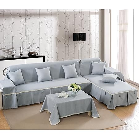 Vercart L Shaped Corner Sofa Throw Cover Polyester Gray
