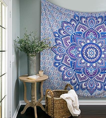 Indian Mandala Tapestry Wall Hanging Blue Sofa Cover Bohemian Bedspread Home Decor
