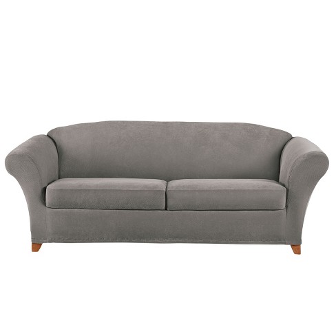 Stretch Pique 3pc Sofa Slipcover Flannel Gray Sure Fit