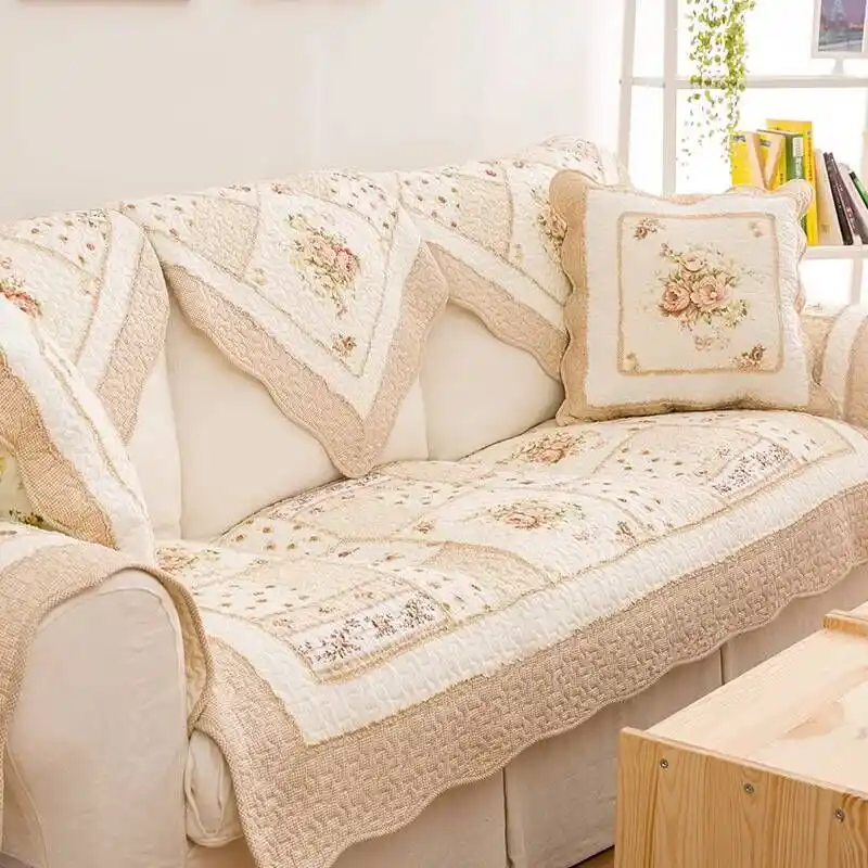 Cotton Patchwork Sofa Covers Cushion Pastoral Fabric Leather Sofa Pad Armrest Towel Bay Window Cushion Cotton Sofa Towel