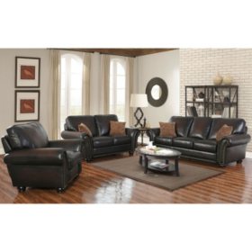 Melrose Leather Sofa Loveseat And Pushback Recliner 3
