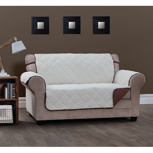 Sure Fit Reversible Chocolate Suede Sherpa Loveseat Cover