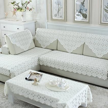 Bbdsj Lace Sofa Slipcovers Sofa Blankets And Throws Soft Anti Slip Sofa Covers Polyester Fabric Furniture Protector Couch Cover For Living Room White