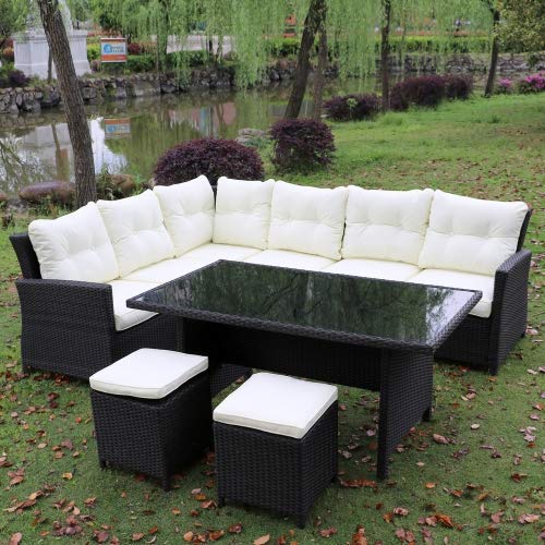Orno Ttobe 7 Piece Outdoor Patio Sofa Sectional Garden Rattan Wicker Furniture With Furniture Cover Red Cushion
