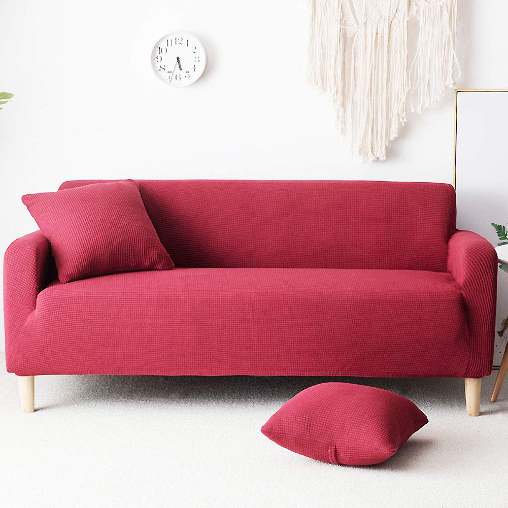 Cocoarm Cocoarm Solid Pure Colour Elastic Couch Stretch 4 Seater Slipcover Burgundy 4 Seat From Amazon Bhg Com Shop