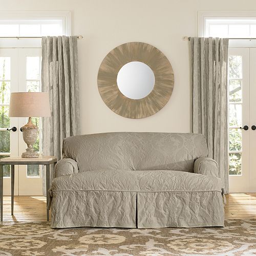 Sure Fit Matelasse Damask T Cushion Loveseat Slipcover