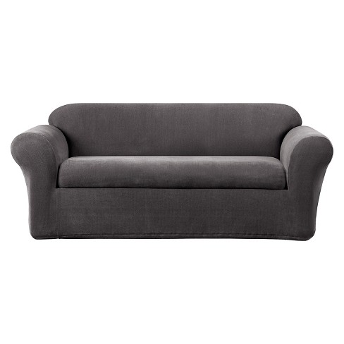 Stretch Oxford 2 Piece Sofa Slipcover Gray Sure Fit