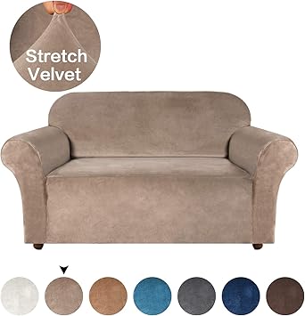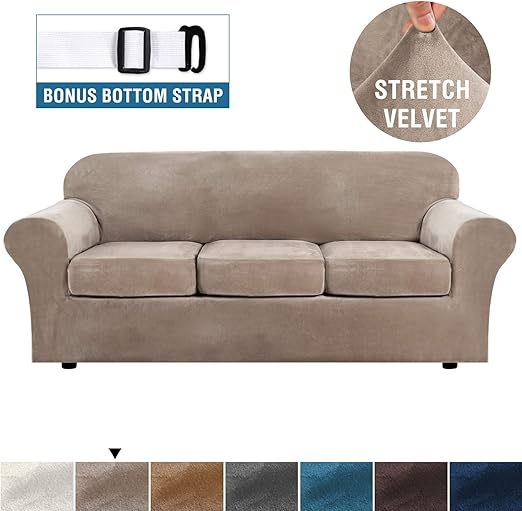 H Versailtex Modern Velvet Plush 4 Piece High Stretch Sofa Slipcover Strap Sofa Cover Furniture Protector Form Fit Luxury Thick Velvet Sofa Cover For