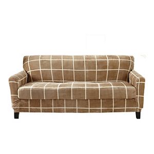 Great Bay Home Camellia Collection Velvet Plush Form Fit Stretch Sofa Slipcover