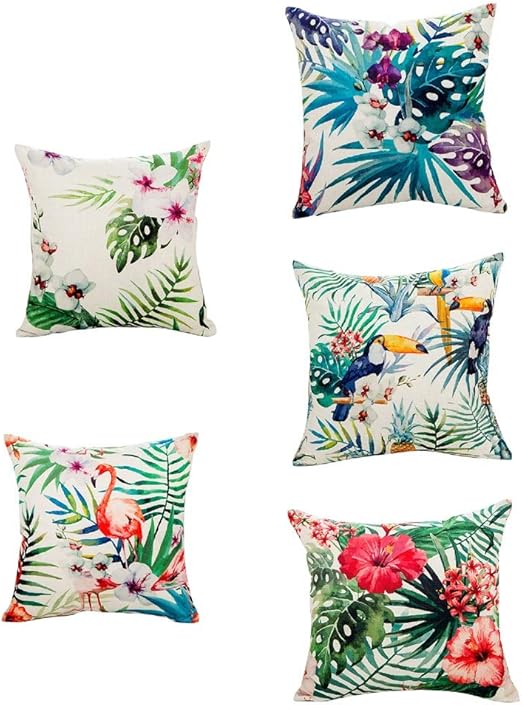 Grootey Boho Throw Pillow Covers Square Pillow Covers With Zip Couch Sofa Decor Watercolexotic Pattern Leopards Colorful Tropical Leaves Geometric