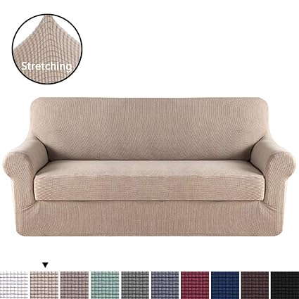 H Versailtex Modern Spandex 2 Pieces Sofa Cover Lycra Jacquard High Stretch Sofa Slipcover Stylish Furniture Cover Protector Machine Washable Sofa
