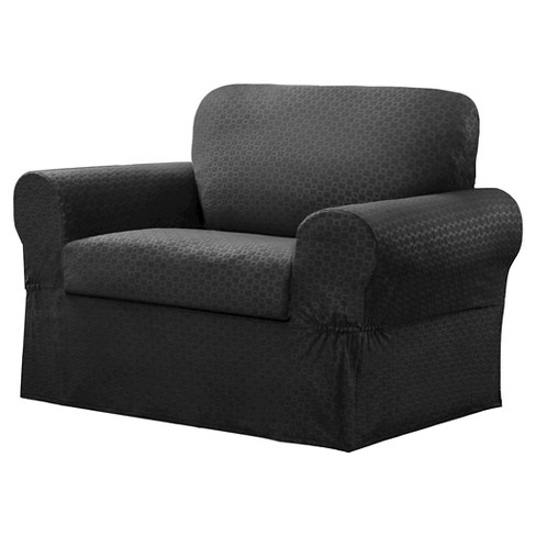 Maytex Collin Stretch Two Piece Loveseat Slipcover Black